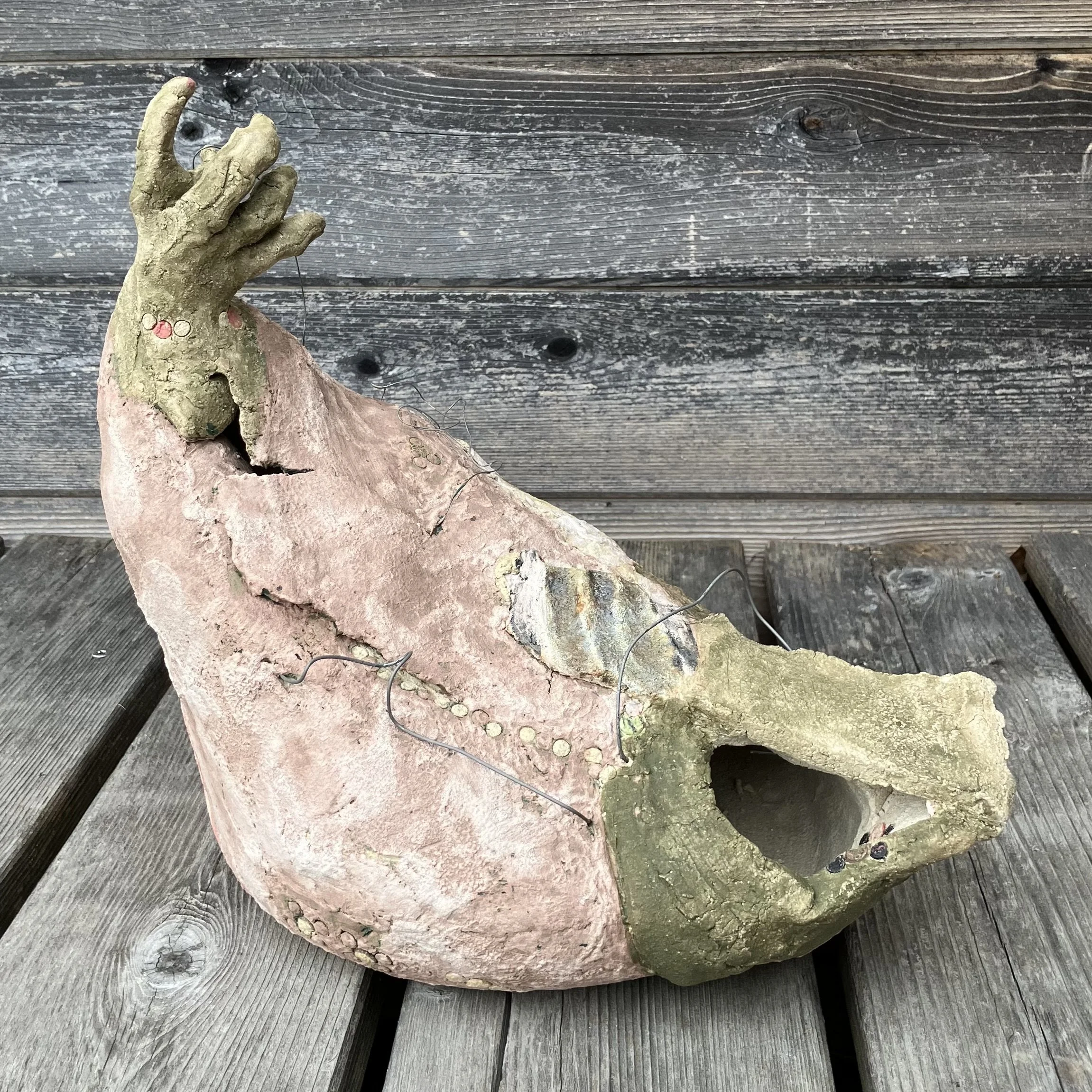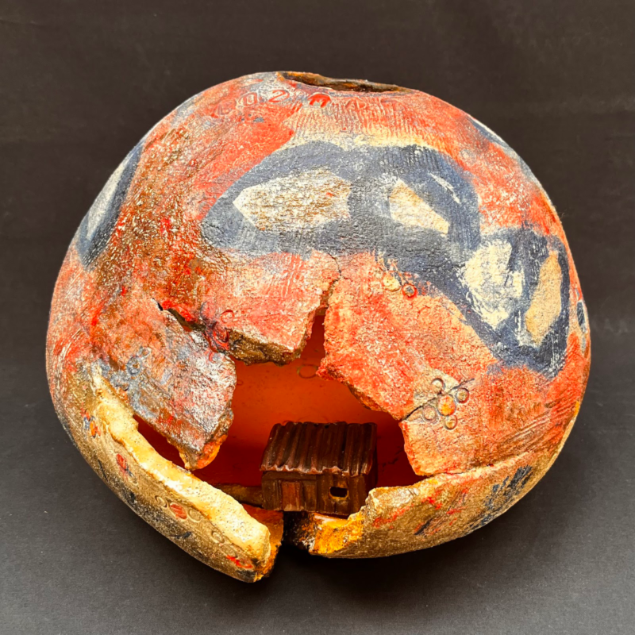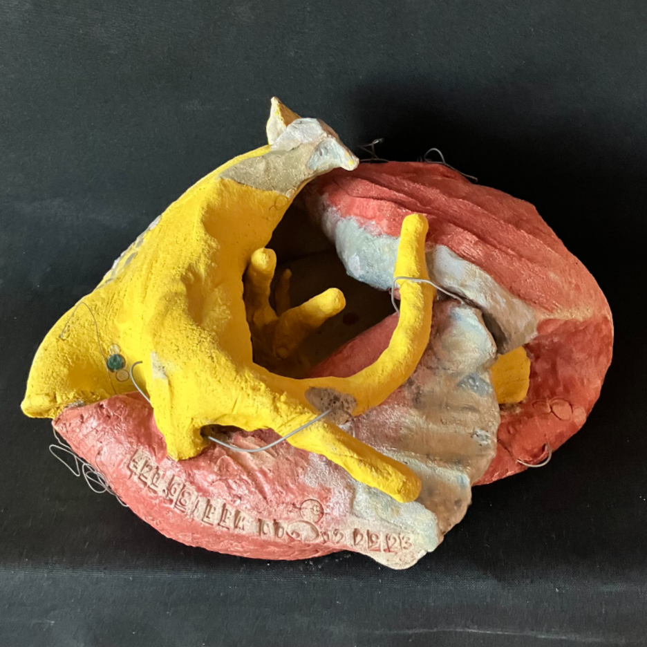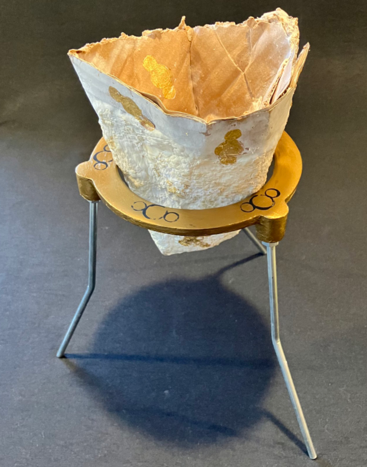 Works in clay, cardboard and mycelium