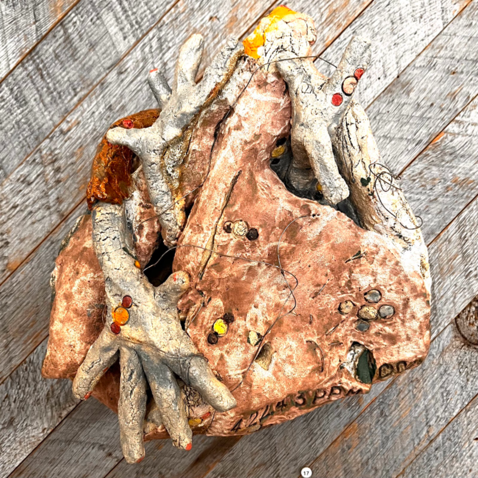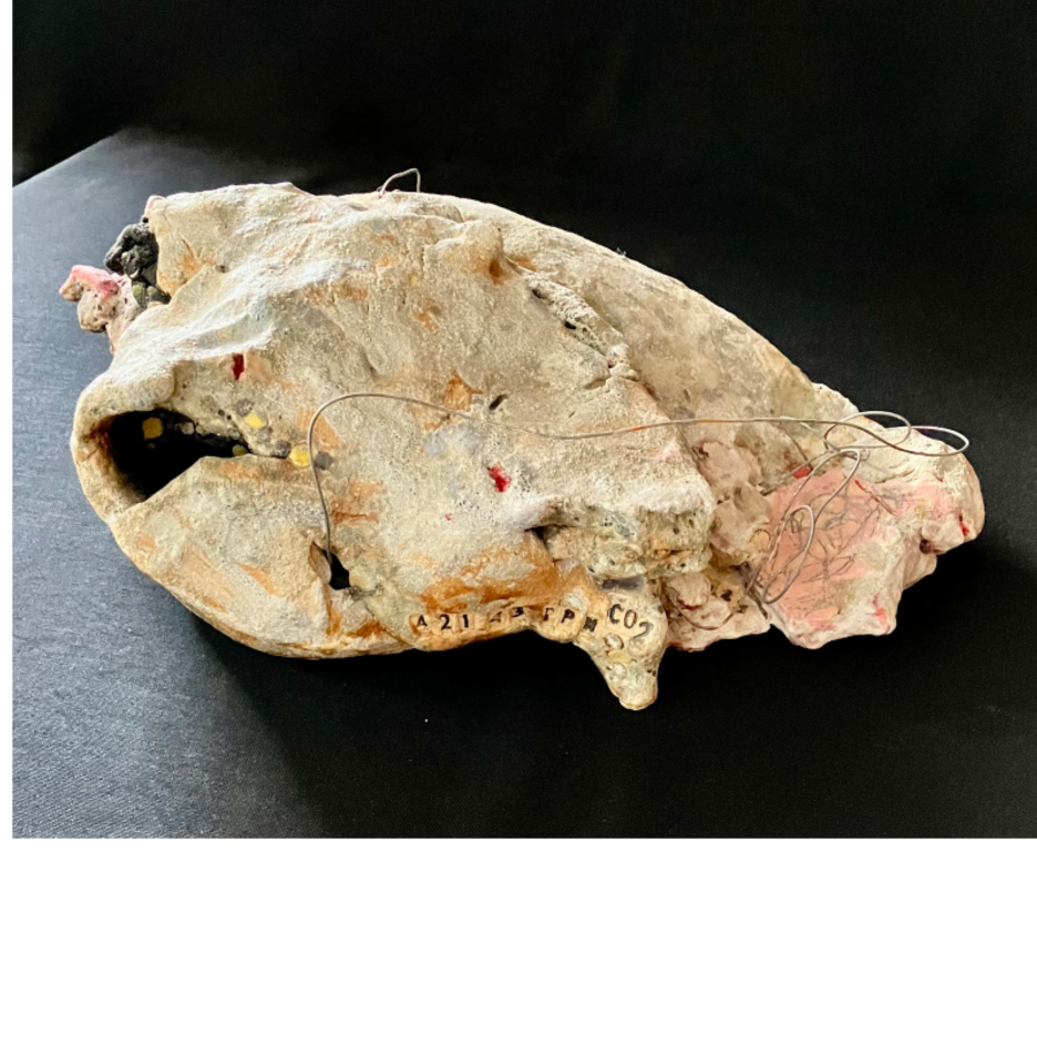 Future Bird Descendant: 422.68 ppm on 5/29/23. 2023 & 2025. Sculpture clay, nichrome wire. 6" high x 13" long x 13" wide. | Future Bird Descendant: 422.43 ppm CO2 on 11/17/23. 2023-24. Stoneware, nichrome wire. 9.5" high x 9 long "x 6" wide. | Future Bird Descendant: 421.23 ppm CO2 on 7/30/23. 2023-24. Sculpture clay, nichrome wire. 5" high x 17"x long 11" wide. | Future Bird Descendant: 420.61 ppm CO2 on 11/21/23. 2023-24. Sculpture clay, nichrome wire. 7" high x 12" long x 12" wide. | Future Bird Descendant: 421.47ppm CO2 on 8/1/23. 2023-24. Stoneware, nichrome wire. 13" high x 13" long x 4" wide. | Future Bird Descendant: 422.86 ppm CO2 on 1/6/24. 2024. Sculpture clay, nichrome wire. 6" high x 14" long x 12" wide. | Future Bird Descendant: 430.5 ppm CO2 avg. May 2025. 2025. Sculpture clay, nichrome wire. 8" high x 22" long x 20" wide. | Future Bird Descendant: 419.19 ppm CO2 on 8/17/23. 2023. Sculpture clay, nichrome wire. 8" high x 8" long x 9" wide. | Future Bird Descendant: 419.42 ppm CO2 on 11/13/23. 2023-24. Stoneware. 12" high x 12" long x 5" wide.