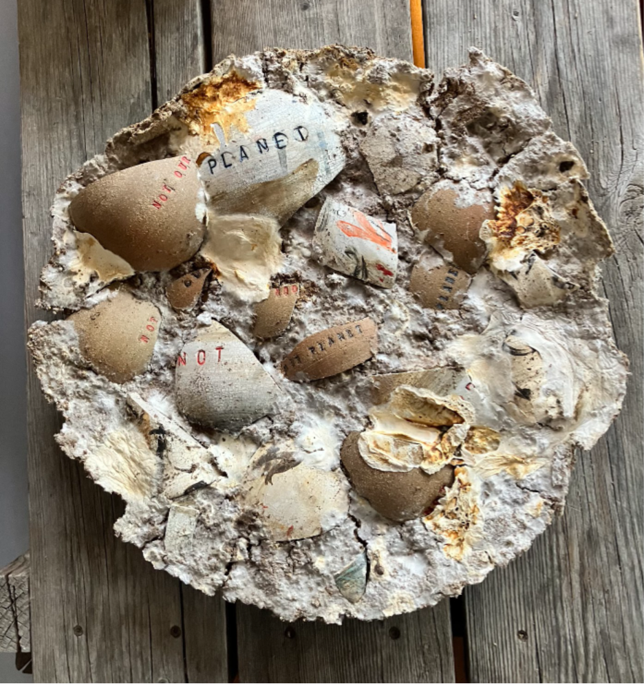 Jane Dodds made the works in Not our over the last nine years to bring attention to the “cry of the Earth.” That cry is, in effect, a call for change in the face of damages to the Earth’s systems caused by escalating increases in carbon emissions and other human-driven activities.